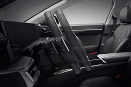 10 에어백 시스템(1열 어드밴스드/센터사이드, 1/2열 사이드, 운전석 무릎, 전복대응 커튼)고객 안전 향상을 위해 동급 최초로 앞좌석 센터 사이드 에어백을 적용하여 차량 측면 충돌 발생 시 운전석과 동승석 승객 간의 상호 충돌 및 내장 부품과의 충돌로부터 안전하게 보호합니다.