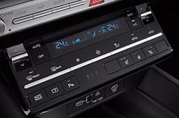 듀얼 풀오토 에어컨(마이크로 에어필터/오토 디포그/미세먼지 센서/공기청정모드/애프터 블로우)원하는 온도를 설정하면 자동으로 설정된 온도로 풍량을 조절하여 쾌적한 실내를 완성합니다.<br>* 차량에 따라 공조관련 다양한 기능이 추가됩니다.<br>듀얼 : 듀얼모드 적용으로 운전석과 동승석의 온도를 다르게 설정할 수 있습니다.<br>오토디포그 : 전면유리의 김서림을 감지해 스스로 전면 유리 및 앞좌석 유리의 김서림을 없애 운전시야를 확보합니다.<br>공기 청정 모드 : 일정 시간 동안 외부 공기를 차단하고 내부 순환모드를 가동하여 실내에서 순환하는 공기를 반복적으로 필터링하여 공기질을 개선시키는 기능입니다.<br>애프터 블로우 : 고객이 인포테인먼트 시스템 화면 내에서 설정할 경우, 시동 OFF 시 일정시간 후 블로워를 작동시켜 에어컨 내 잔류 응측수를 저감시켜 에어컨 냄새 저감 효과를 제공합니다.
