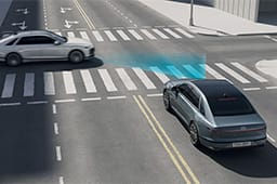 전방 충돌방지 보조(차량/보행자/자전거 탑승자/교차로 대향차)선행 차량이 갑자기 속도를 줄이거나 전방의 정지 차량, 보행자, 자전거 탑승자 및 교차로 대향차와의 충돌 위험이 감지되면 경고로 알려줍니다. 경고 후에도 충돌 위험이 높아지면 자동으로 제동을 도와줍니다.