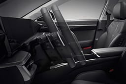 10에어백 시스템(1열 어드밴스드/센터사이드, 1/2열 사이드, 운전석 무릎, 전복대응 커튼)고객 안전 향상을 위해 동급 최초로 앞좌석 센터 사이드 에어백을 추가하여 차량 측면 충돌 발생 시 운전석과 동승석 승객 간의 상호 충돌 및 내장 부품과의 충돌로부터 안전하게 보호합니다.