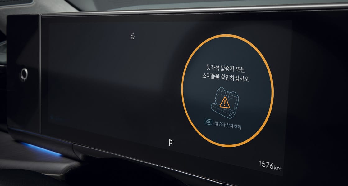 어드밴스드 후석 승객 알림기존 뒷좌석 탑승객 / 반려견 등의 움직임을 감지하여 알람을 주던 초음파 타입 대비 레이더를 적용하여 수면 중인 영유아까지 감지, 후석 승객 방치로 발생할 수 있는 안전 사고를 예방합니다.