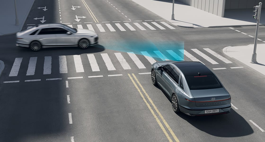 후방 교차 충돌방지 보조후진 중 좌/우측에서 다가오는 차량과 충돌 위험이 감지되면 운전자에게 경고로 알리고, 경고 후에도 충돌 위험이 높아지면 자동으로 제동을 도와줍니다.