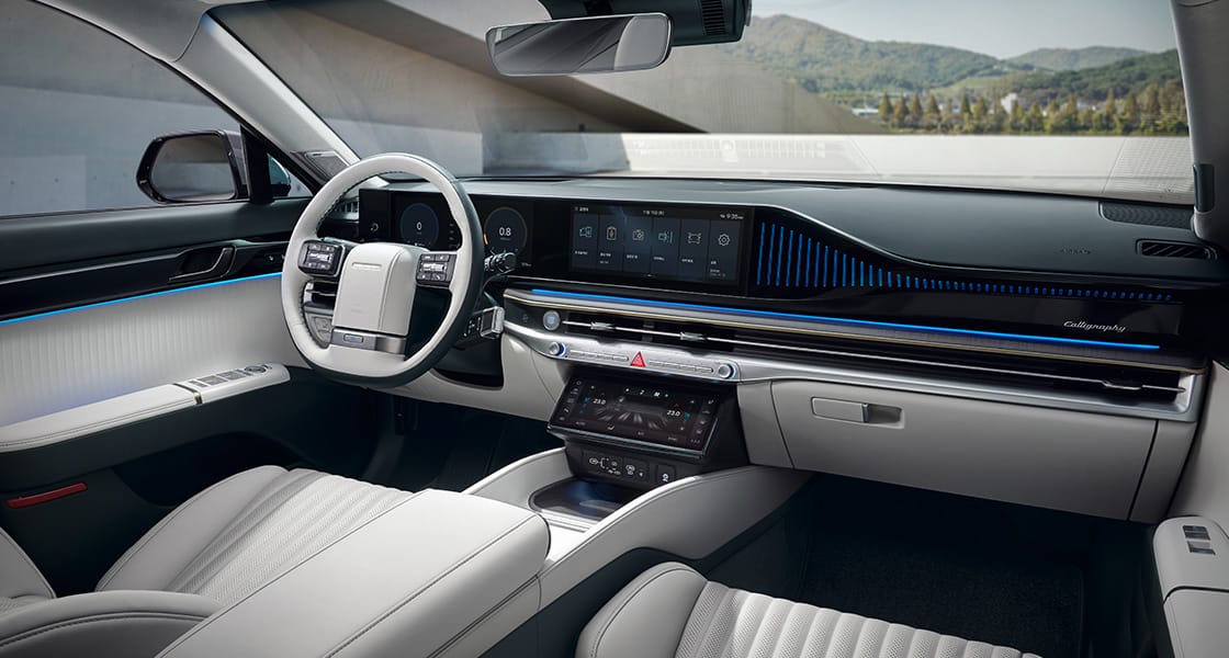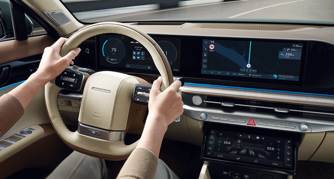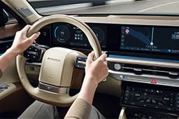 12.3인치 내비게이션(블루링크, 폰 프로젝션, 블루투스 핸즈프리, 인카페이먼트/e hi-pass)12.3인치의 대화면 고해상도 와이드 LCD 내비게이션을 구성하고, 클러스터 및 헤드업 디스플레이와 일원화된 GUI 테마를 적용하여 안정감 있는 시인성과 하이테크한 이미지를 제공합니다.