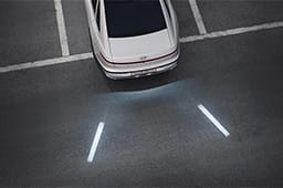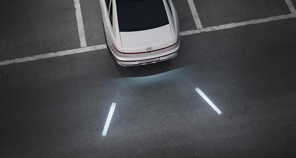 후진 가이드 램프차량 후진 시 후방 노면에 가이드 조명을 비춰 주변 차량 및 보행자가 차량 주행 방향을 알 수 있게 도와줍니다. 렌즈 타입 램프로 가이드라인의 형상과 밝기가 더욱 또렷하고 선명하게 표시됩니다.