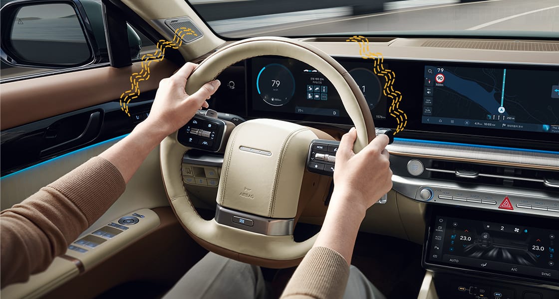 스티어링 휠 그립감지기존 간접식 그립감지의 정확도 부족 한계를 개선하여, 운전자의 그립을 직접 감지하는 전류 측정 방식의 스티어링 휠 그립감지를 적용해 ADAS 사용 시 편의성을 높였습니다.