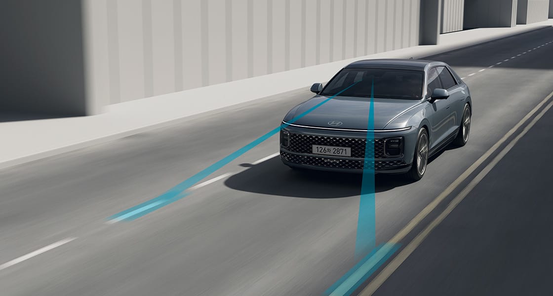 차로 유지 보조 2전방 카메라로 차로를 인식하여 운전자가 차로 중앙을 유지하며 주행하도록 도와주고, 차로 미인식 시 전방 차량을 인식해 일정 시간 동안 조향을 도와줍니다. 기존 대비 작동 영역 확대(급격한 코너 등) 및 조향각 제어 적용으로 차로 중앙 유지 성능이 향상되었습니다.