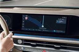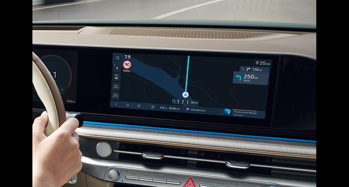 12.3인치 내비게이션(블루링크, 폰 프로젝션, 블루투스 핸즈프리, 현대 카페이/e hi-pass)12.3인치의 대화면 고해상도 와이드 LCD 내비게이션을 구성하고, 클러스터 및 헤드업 디스플레이와 일원화된 GUI 테마를 적용하여 안정감 있는 시인성과 하이테크한 이미지를 제공합니다.