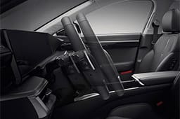 10에어백 시스템(1열 어드밴스드/센터사이드, 1/2열 사이드, 운전석 무릎, 전복대응 커튼)고객 안전 향상을 위해 동급 최초로 앞좌석 센터 사이드 에어백을 추가하여 차량 측면 충돌 발생 시 운전석과 동승석 승객 간의 상호 충돌 및 내장 부품과의 충돌로부터 안전하게 보호합니다.