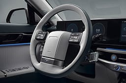 원스포크 타입 가죽 스티어링 휠(열선, 인터랙티브 픽셀 라이트 포함)그랜저의 헤리티지를 계승하면서 하이테크한 감성의 미래지향적인 디자인으로 원스포크 가죽 스티어링 휠을 구현하였습니다. 스티어링 휠 중앙부 혼커버에 4개의 LED 픽셀 조명이 운전자의 차량 조작 및 음성인식과 연계하여 작동합니다.