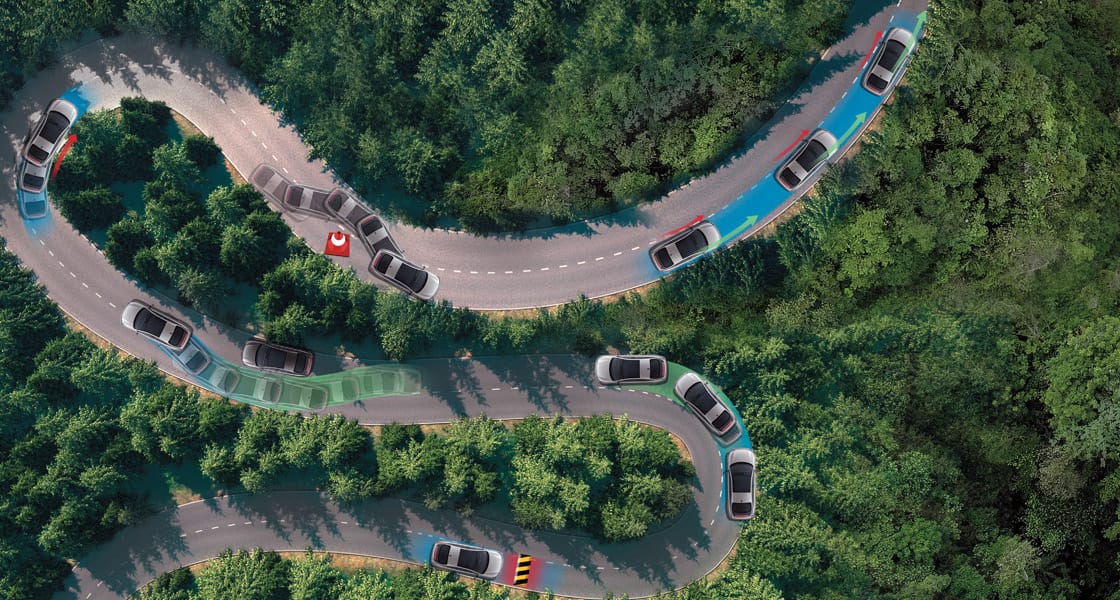 내비게이션 기반 스마트 크루즈 컨트롤(안전구간/곡선로)안전속도 구간이나 곡선 구간 진입 전에는 자동으로 속도를 줄여줍니다. 해당 구간을 지나면 원래 설정한 속도로 복귀합니다.