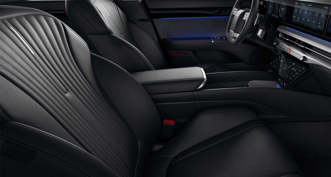 원스포크 타입 가죽 스티어링 휠(열선, 인터랙티브 픽셀 라이트 포함)그랜저의 헤리티지를 계승하면서 하이테크한 감성의 미래지향적인 디자인으로 원스포크 가죽 스티어링 휠을 구현하였습니다. 스티어링 휠 중앙부 혼커버에 4개의 LED 픽셀 조명이 운전자의 차량 조작 및 음성인식과 연계하여 작동합니다.